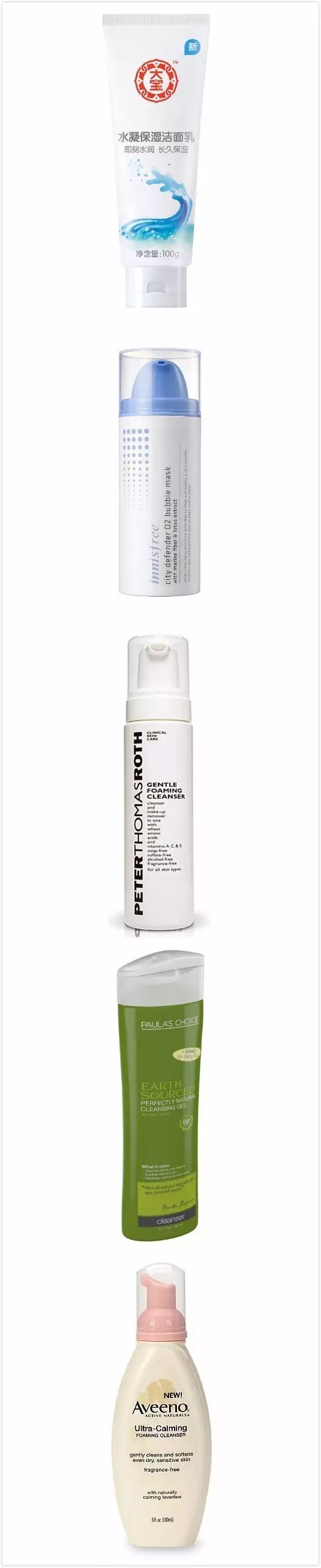 我觉得无论怎么油,从健康的角度来考虑,每天两次清洁就可以了,而且只有一次需要用到那些“深层清洁”的产品。另外一次(比如早上)可以用清水,最多用一些氨基酸类(比如大宝的水凝保湿洁面乳)或者APG类(烷基葡萄糖苷)的清洁产品(比如悦诗风吟的都市精华泡沫清颜系列,彼得罗夫的那个Gentle foaming和宝拉的那个Perfectly Natural Cleansing),Aveeno的抗敏泡沫洁面乳看起来也不错。
