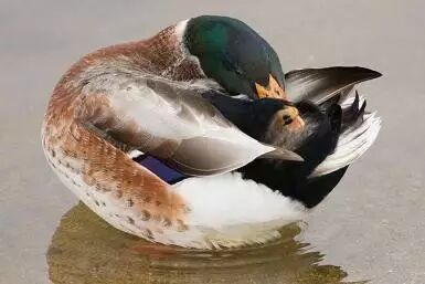 想想鸭子们,把屁屁附近分泌的油脂涂抹到全身的样子。