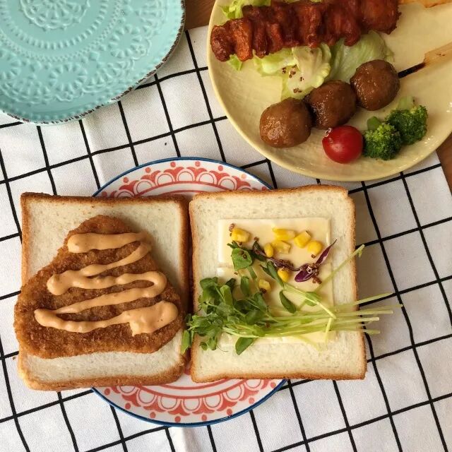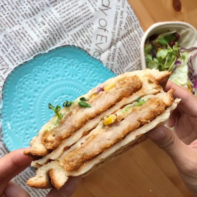 鸡排+芝士+玉米粒+千岛酱+吐司