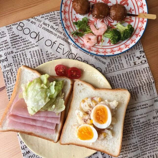 火腿+鸡蛋+土豆泥+生菜+鸡蛋+吐司