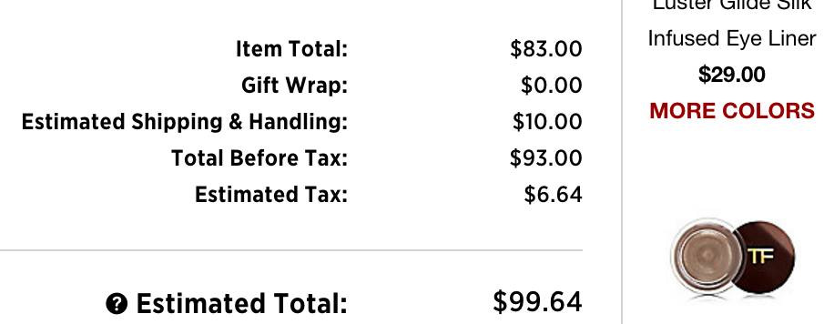 结算时填完地址就能看到税款。这个83美金的彩妆盘会被收6.64刀的税……