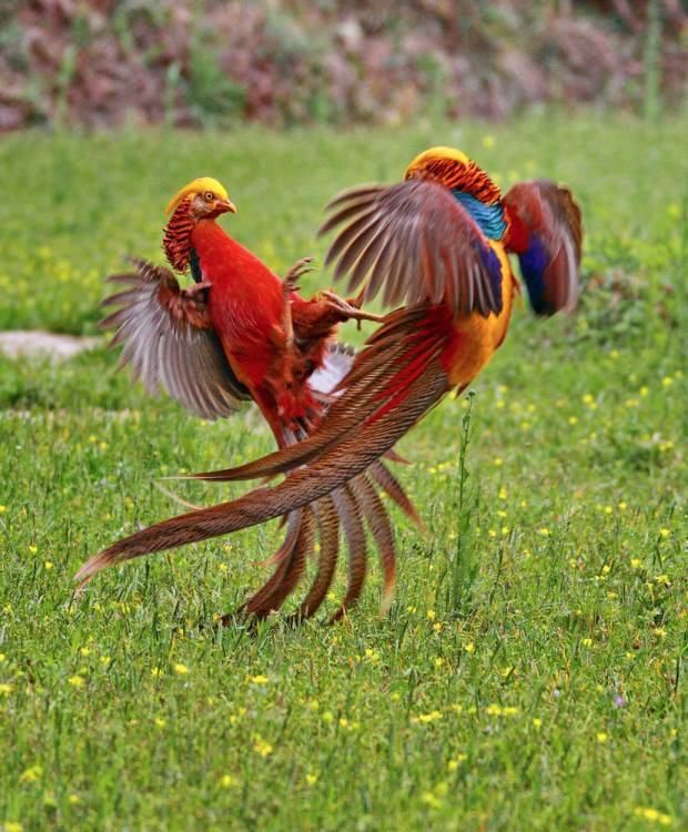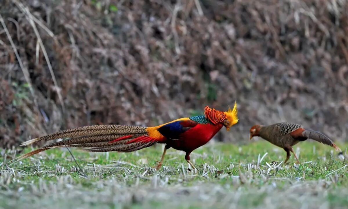 左边好看的是雄鸟,右边是雌鸟。这比“野鸡”环颈雉艳丽啊。