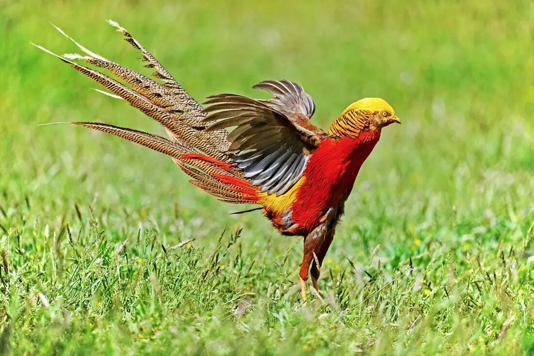 红腹锦鸡是我国特有的鸟类,体型不算小,雄鸟长得异常华丽,整个鸡就是一副盛装打扮过的模样,光彩夺目。怪不得要说它“华虫,鷩雉也,五色,故谓华也”,“雉身被五彩,象圣王体兼文明也”。在这么多“虫”里独独给了它一个“华”字,真是个看脸的世界啊!