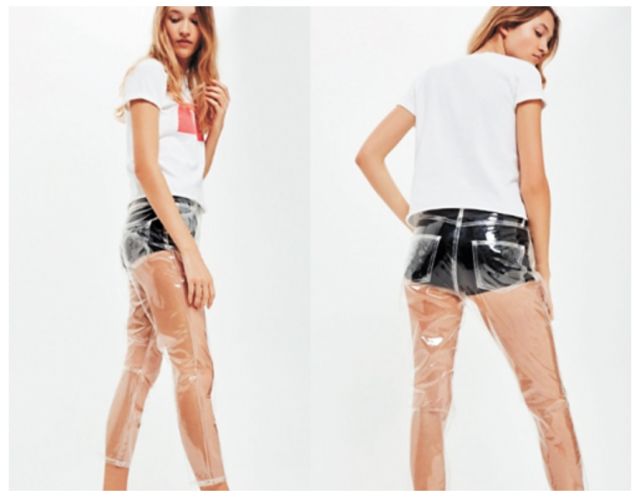 这条牛仔裤售价55英镑,合人民币近500元。但是这个售价并不包括图中的黑色牛仔短裤。是的,你没有看错,500元的透明塑料“牛仔裤”!活儿姐只能说,嗯,好吧,下雨天穿还是不错的……