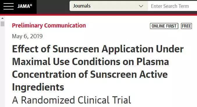 今天行业最热的话题,是美国医学会杂志JAMA(The Journal of the American Medical Association,JAMA)上发表的一篇研究文献:《最大程度使用防晒霜对血浆内防晒活性成分浓度的影响:一项随机临床试验》。实验中4组志愿者分别使用4种防晒霜,并在7天内被多次抽血检查,以确认有多少防晒成分被吸收进血液了。
