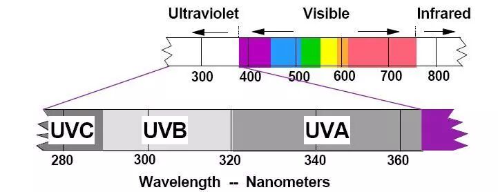 UVA1:340-400nm;UVA2:320-340nm;UVB:290-320nm丨Gibson, 2008