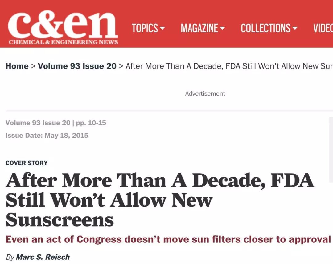 美国化学学会2015年曾发文吐槽:都已经过了十年了,FDA还是不批准新防晒剂 !