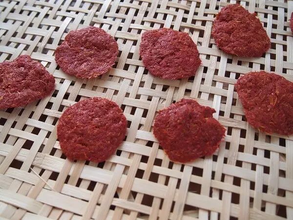 明代《天工开物》中记载红花饼的做法是“带露摘红花,捣熟以水淘,布袋绞去黄汁。又捣以酸粟或米泔清。又淘,又绞袋去汁,以青蒿覆一宿,捏成薄饼,阴干收贮。”日本古代的加工方法是把红花采摘下来水洗去黄色,放置发酵一两天后揉搓团成红饼晒干。