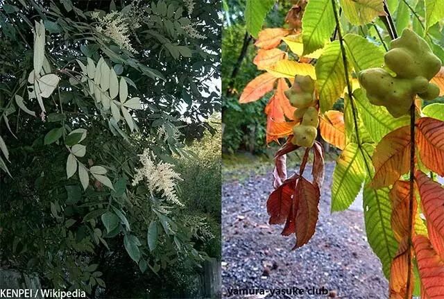 未被寄生的盐肤木和寄生产生的五倍子。图片来源见水印