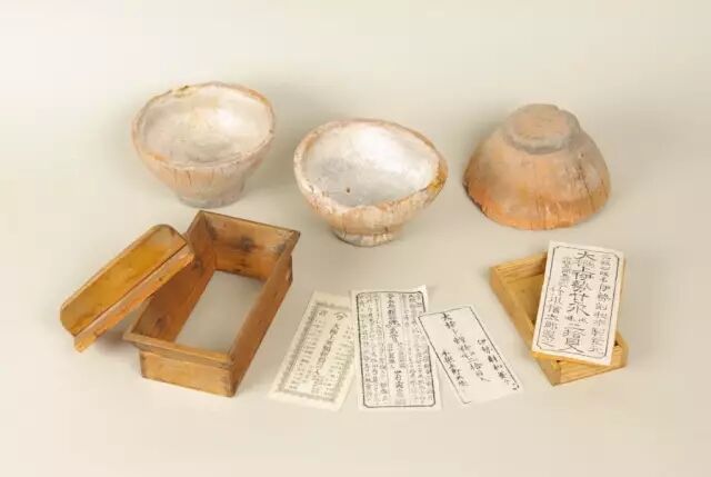 轻粉釜盖(上)和江户时代的包装盒(下) 。图片:三重県立博物館 / 歴史的情報蔵