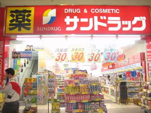 注意看图,サンドラッグ 是店名,头上的英文是 Drug & Cosmetic ,直接翻译是「药品妆品店」。但是大概湾湾人民嫌这个名字太长,就简而言之变成了「药妆店」。