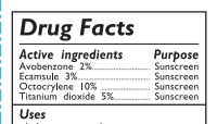 所以你可以在防晒霜的产品信息表里看见 Drug Facts, 里面标明了活性成分是什么,有什么作用。