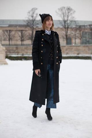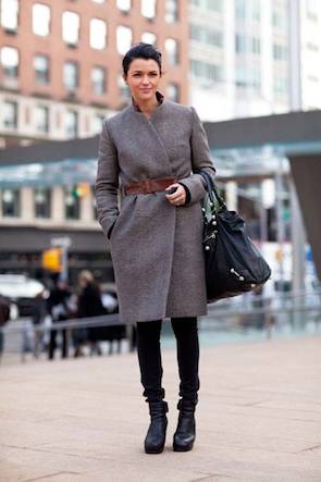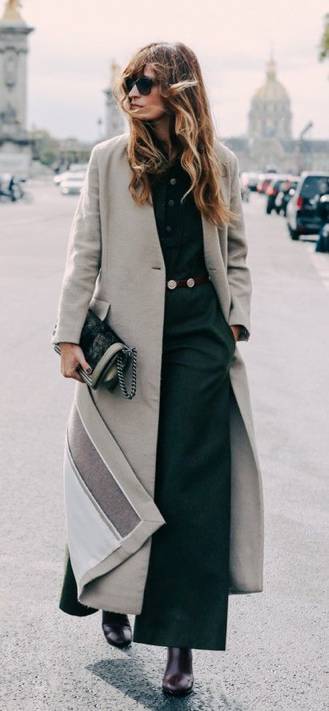 然而说了那么多,娇小的人也并非绝不能穿长大衣!但是大衣的线条一定要修长,富有纵向的流动感,上半身一定不能显壮,而且一定要有能强调高腰线的元素:可以是腰带,可以大衣敞开露出的短上衣,也可以是大衣上将视线提高的衣领、扣子、衣兜等设计,如果还有高跟鞋的加持就更棒了。