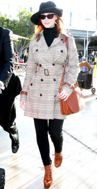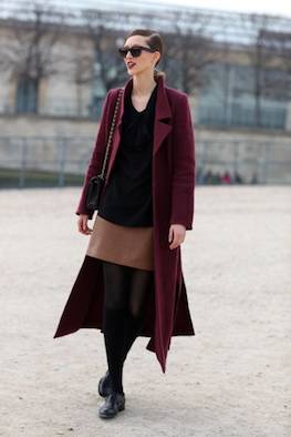 从胸下沿开始逐渐变宽的A型大衣很适合苹果形身材,因为苹果形身材要避免腰部最粗的那一截有大衣卡在肉上的情况发生。