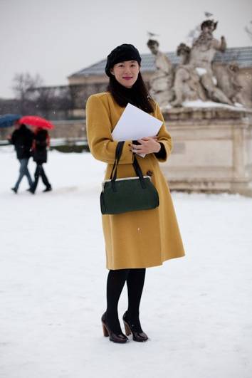 下摆稍大的A型中长款大衣很适合小身板儿穿着,上小下大让重心看起来比较稳固,而且有点娃娃款大衣的感觉也显得人可爱,是娇小型同学可以利用的优势。