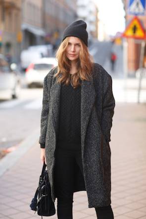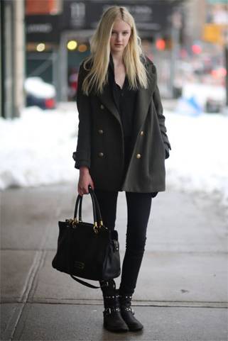 还有,也要考虑到会在大衣里穿多少衣服的问题,如果里面穿得比较厚,大衣就得买稍微宽松一点的,才不至于裹成粽子动弹不得;腋下和袖管的空间也同理。
