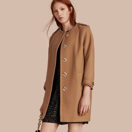 上面这件Burberry的牛角扣大衣就是100%羊毛的,保暖性绝佳的同时,还能让衣服形状保持硬挺。但是有的羊毛会扎人,纯羊毛大衣可能比较重。