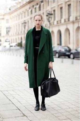 绿色大衣很好看,但是它确实属于比较难搭的类型,绿控可以考虑来一件。