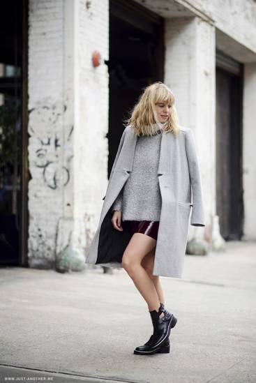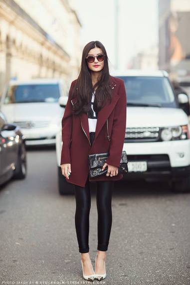 在能够驾驭oversized大衣的前提下,利用宽大的短大衣和相对纤细的腿部作对比,且用不贴身内搭遮住最胖的部位,苹果和梨形身材给人的印象就可以被大幅度削弱,而且还很时髦。