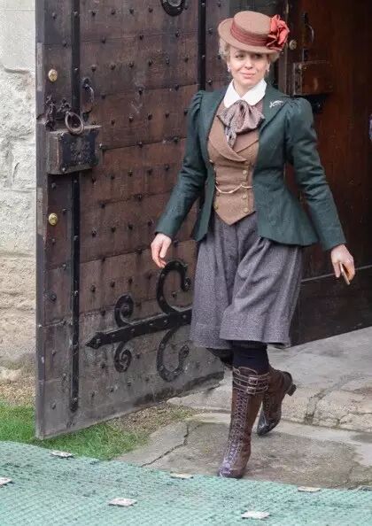 而灯笼裤由于深受引领时尚潮流的巴黎女性偏爱所以成为了非常时髦的装束。下图,华生太太的这身装束是编剧和导演从侧面塑造她是进步时髦女性的手法哦。