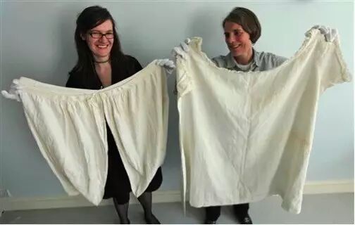 以下是女王陛下的内衣裤组合,请深刻地感受一下!左边咱维多利亚女王穿过的drawers的组合哦,有钱就是舍得用布料,请感受这尺寸。并不是女王屁股有那么大!