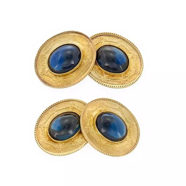 袖扣,分别是蓝宝石+黄金、黄金以及蓝宝石+黄金+钻石的组合。