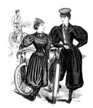 不得不说一下运动服,当时体育运动越来越受重视,女性健康问题也被广泛讨论,所以女性也积极参与各类运动,自行车服和网球服是当时女士运动服的典型代表。“骑行服”采用更短的裙子或者土耳其风格的“灯笼裤”搭配短夹克上衣,90年代女骑手们在男伴或者女伴的陪同下越来越多地在公众场合穿着这种风格的衣服。