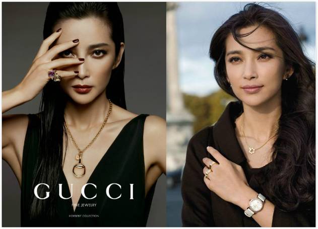 李冰冰为Gucci代言时,也是被画成了白骨精,还是右边看起来自然亲和。