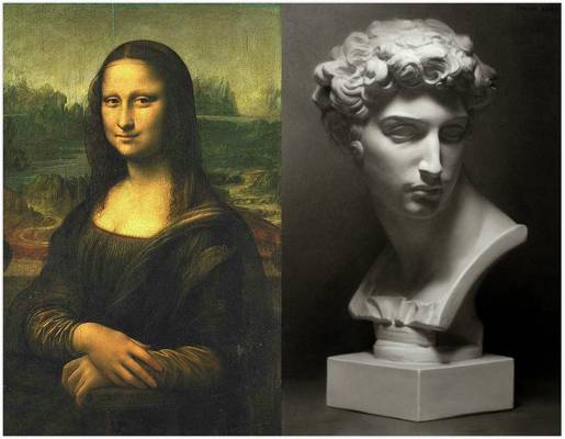 高加索人种的面部特点概括地来说,就是五官立体,凹凸有致。他们的颧骨比较靠近脸部正面,而蒙古人种的颧骨相对更在脸侧突出,也就是外扩。很多时候,高加索人种的脸盘也比蒙古人种要小(外国人是个面团,我们是面团压扁后的饼)。绘画和雕塑,一般会更明显地表现出光影效果,上面的蒙娜丽莎和小卫面部的高光和阴影,很容易看明白——凸出的地方亮,凹陷的地方暗。通过明暗来表现立体感,是一种非常自然直观的方式。