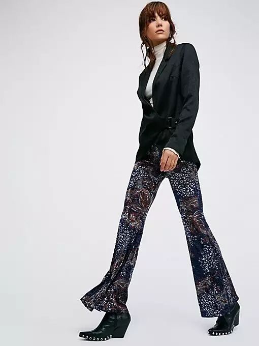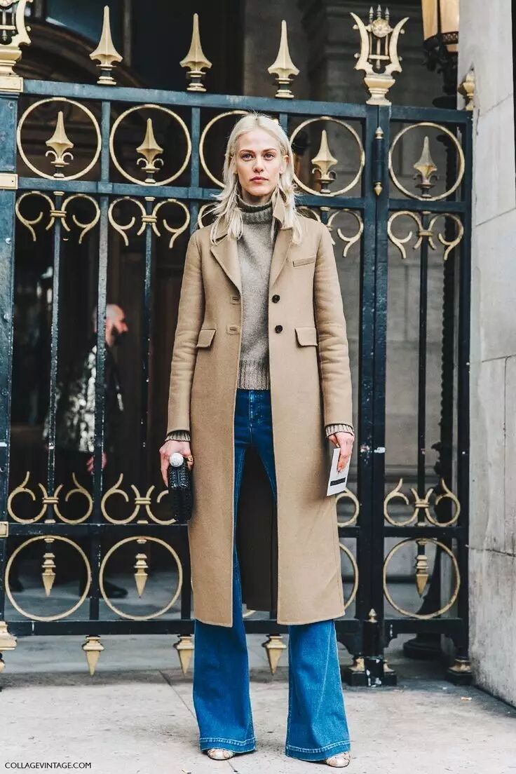 喇叭裤在1920年左右被香奈儿女士带入时尚界。不用多说大家都知道,她的设计极其强烈地体现出了对女性时装舒适度上的需求。喇叭裤不会把你勒到喘不过气,任何腿型的人都能找到适合自己的款式,不像穿紧腿牛仔裤那样,会担心自己的粗大腿被一棍子打到原形毕露,腿不直也没关系。最棒的一点是,喇叭裤自带自由主义光环,你完全可以把自己打扮成一个嬉皮士,或者波西米亚风格的叛逆少女——谁说冬天就必须死气沉沉的?搞起事情来!