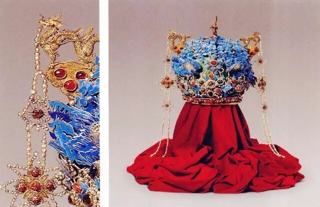 清代是很喜欢珠结作为头部装饰的,很有满人特色的“钿子”上常见珠串,极尽琳琅装饰之能事。
