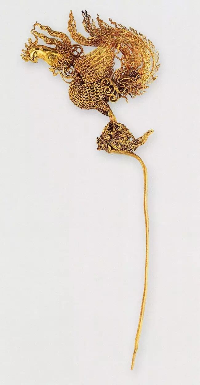 清代,累丝凤鸟纹金簪