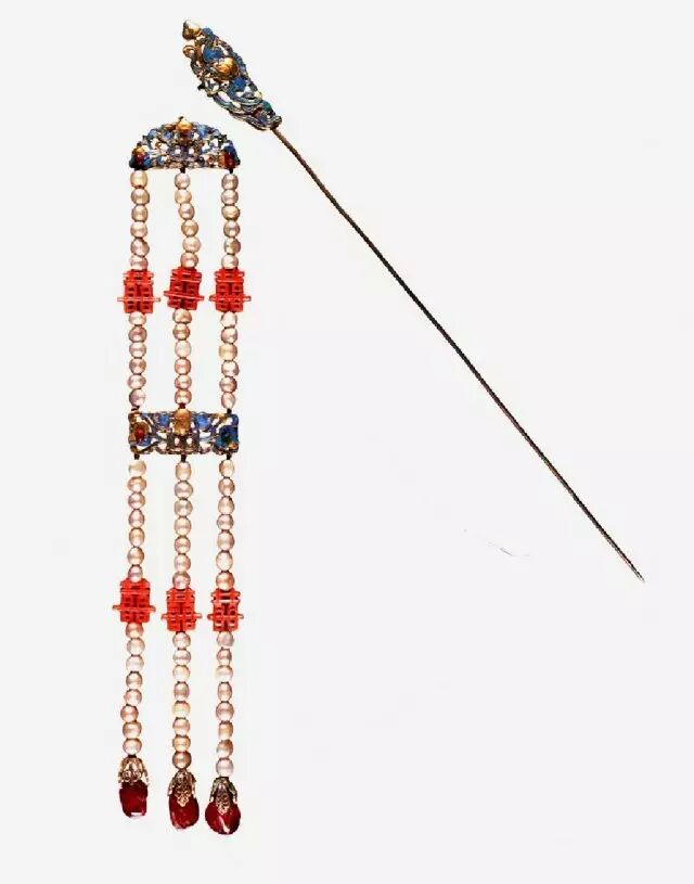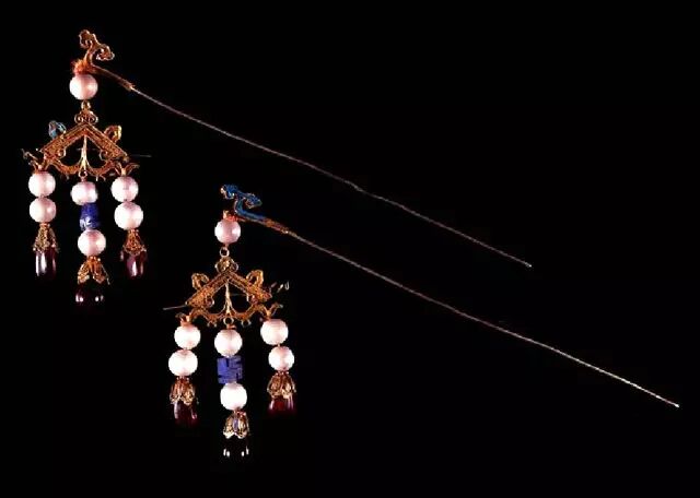 明代首饰里也零星可以看到一些有悬挂物的,不过依然被认为是属于簪子。清代也有类似的饰物。