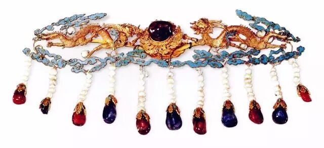 清代,银镀金点翠穿珠流苏。这些一般会用于大婚或吉庆节日,成对使用。