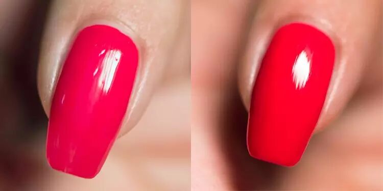 如果是甲油还没有干透时,出现了很轻的小划痕,或者按压出指纹,可以用指腹蘸一点水,轻轻打圈按摩损伤部分,使其恢复平滑。或者立刻涂上一层顶油,使其恢复平滑。