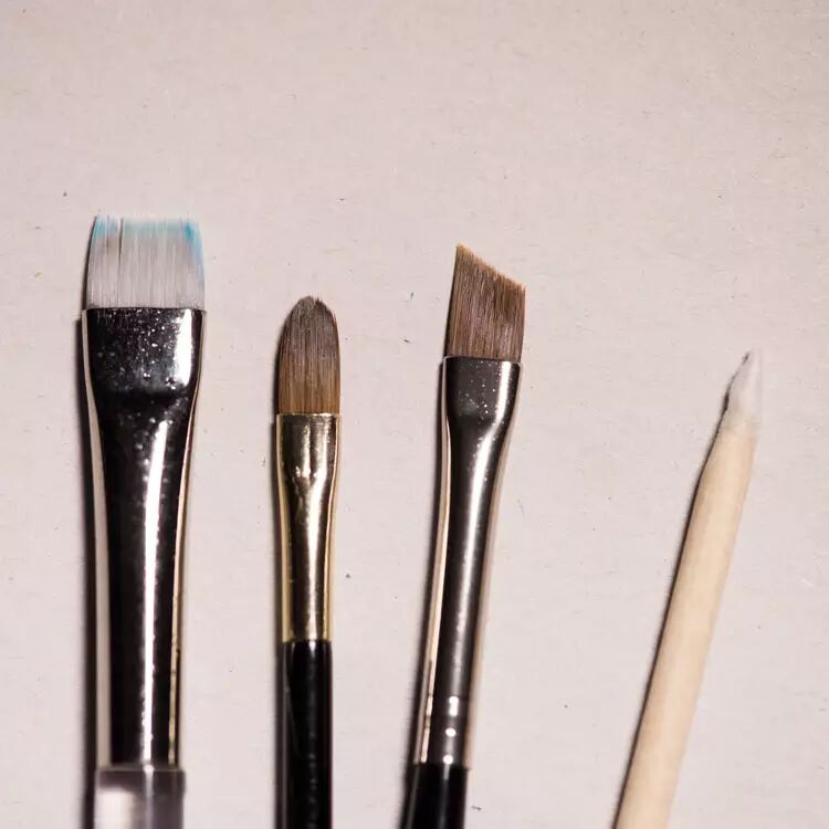 刷子的优点是特别容易修出弧度完美的边缘,而且边缘会比较柔和,也不需要事先准备。也不会弄伤指缘。缺点是修完经常还会有一些残留。