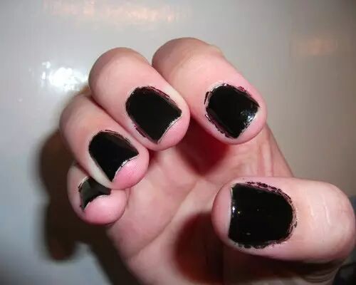 刷子不顺手或者下手重了,使指甲油涂到指甲外面。在指甲油没有完全干透前,用洗甲水去除。