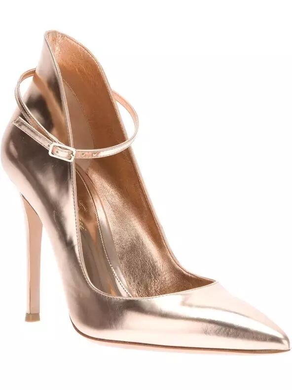 当然,和包包的道理一样,如果整片的金属色觉得hold不住,也可以选择米粉色作为替代,然后在脚踝带子啊这些细节上有一些玫瑰金色点缀即可(下图的鞋来自Zara)。