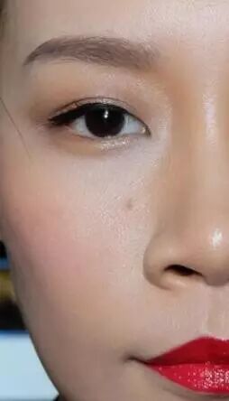 在内眼头涂抹浅色,和外眼角呼应形成三维效果,让眼睛更立体;