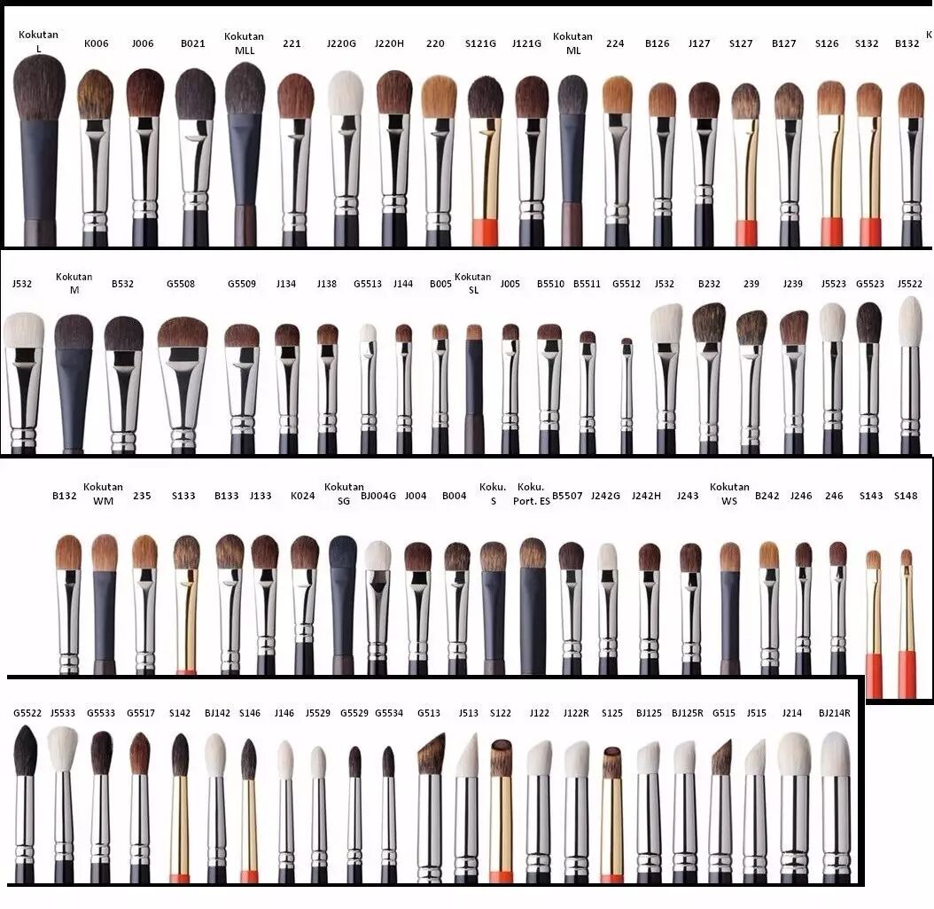 现在,大家对化妆要求更精细,也迫使制造商开发更多的化妆用具。单单眼部用刷,细分下来就有几十款刷型:打底刷、晕染刷、眼线刷、锥形刷、高光刷、斜角刷、马蹄刷……还有不同材质的刷毛:灰鼠毛、羊毛、小马毛、松鼠毛、黄狼毛、猸子毛……直教人眼花缭乱。