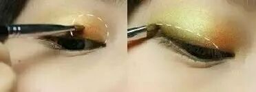 中号刷整体打底后,用小号刷在内眼褶上着墨,制造出从上而下渐层加深的眼影;