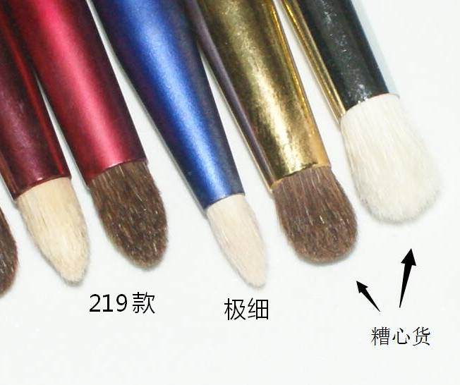 217晕染刷也分优劣。好刷子有完美的椭圆榄型,刷毛松散有力而不刺扎,可以准确拿捏着色范围。不好用的,刷毛软榻、紧密、扎型不佳,这样的刷子,上色太重,晕染推不开,涂色范围拿不准,实在糟心。