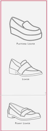 原为男鞋,后来女性也穿。平底,可光脚穿,简洁,学院风。俯视下去,鞋面两边的缺口很像小耳朵。鞋面上常有装饰,比如带子(penny loafers,带子下可以夹小零钱硬币)、蝴蝶结、小穗子(tassel loafers)、金属扣。Platform就是常说的水台,简单理解就是厚厚的鞋底。