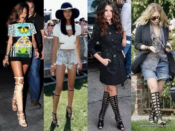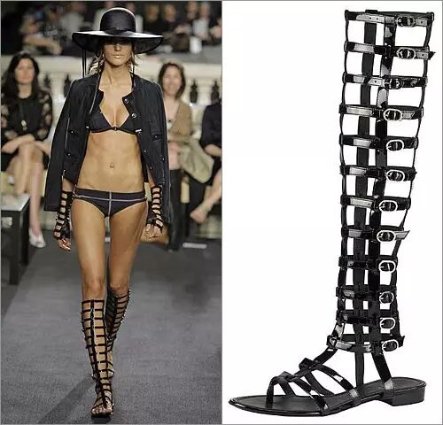 只要看到这种一圈一圈绑带的就是了!以平底居多,高跟的是少数。带子们会把腿“分割”成一块一块,所以 罗马鞋很容易显腿短,肉多的话还会变成粽子。