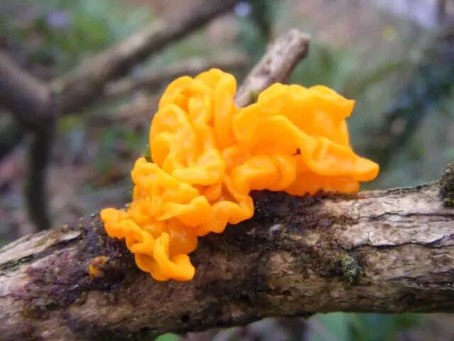 金耳(Tremella aurantialba),从名字来看会觉得它和银耳(Tremella fuciformis)有什么亲戚关系。确实,它们都是银耳科银耳属的大型真菌,生活习性也很相似,都生活在朽木上,光靠自身的菌丝都不能正常利用环境中的营养物质,也长不出能供人食用的子实体。