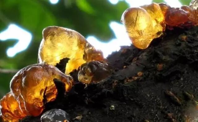 和金耳经常打包一起炖的还有桃胶,没错,就是从桃树上流出来的胶。桃胶是桃、山桃等蔷薇科植物分泌出来的半透明胶状物,一般出现在受伤的树干上,有保护植物免受病原体和害虫侵害的作用,主要成分是多糖,还有一点点蛋白质。