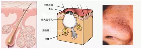 上图左边是正常的毛孔结构,中间是黑头的结构,右边是什么就不用解释了吧