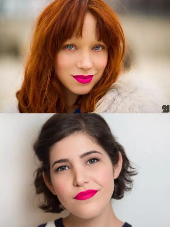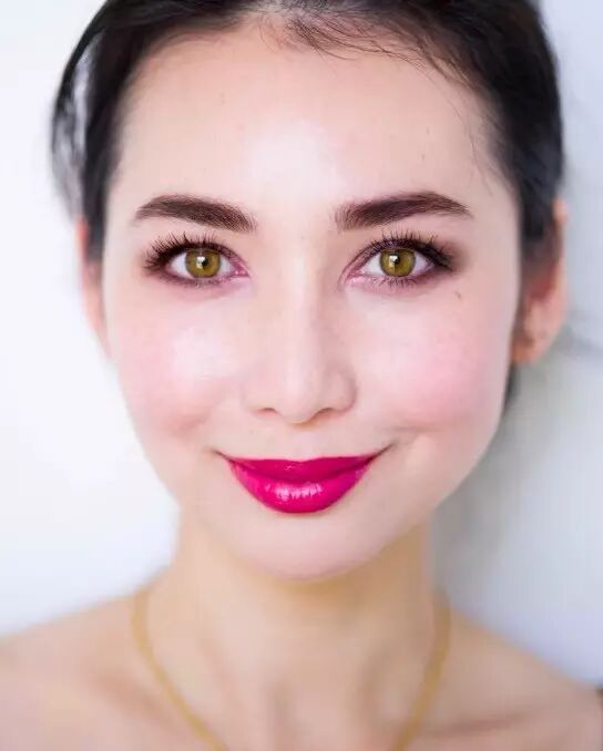 ↑热粉色口红,在黄皮和白皮脸上的效果就很不一样。话说我还是不太明白为何玫红色的口红这么火,因为就算五官立体皮肤白皙白种人也不是谁涂都好看的……