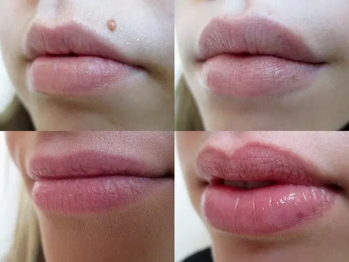 编辑们以为已经用遮瑕把唇部底色统一后再试色,得到的结果大概会比较相似,然而却还是得到了下面这样四种各异的唇色。