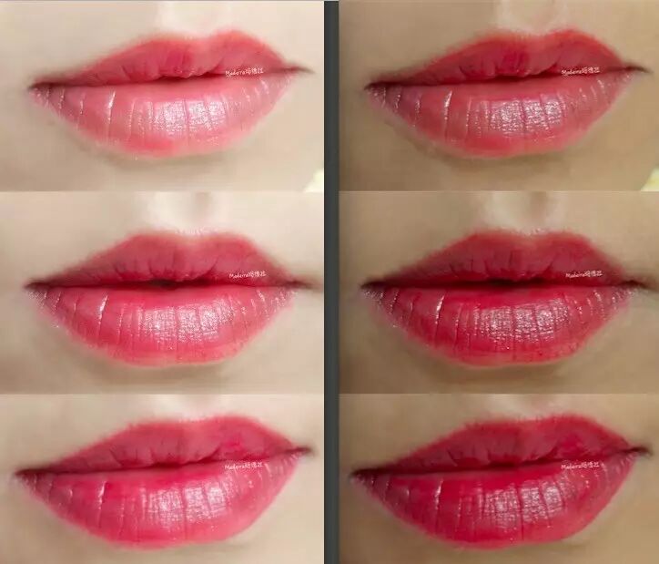 我们很乐意看到有妆前妆后对比图的功课,尤其是受皮肤底色影响很大的唇部产品。